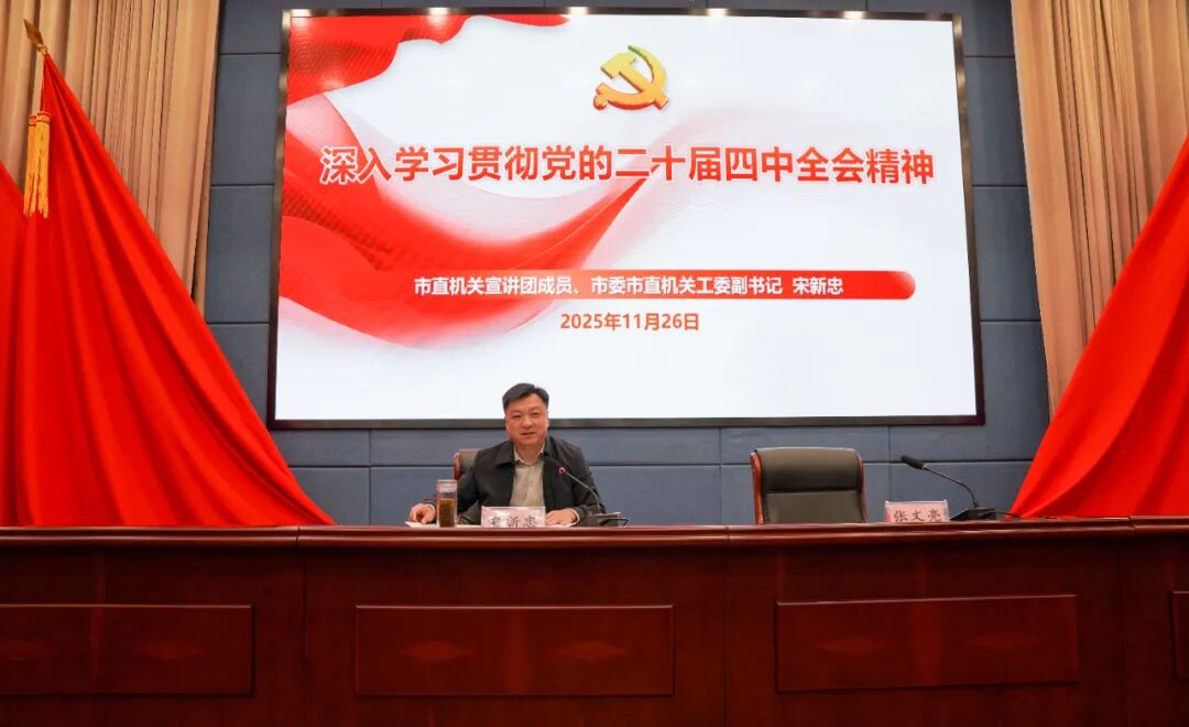 宣讲会上,宋新忠紧紧围绕宣讲主题,从深刻学习领会党的二十届四中全会的重大意义,准确把握“十五五”时期在基本实现社会主义现代化进程中的重要地位,深刻领会“十五五”时期经济社会发展的指导方针和主要目标,全面理解“十五五”时期经济社会发展的战略任务和重大举措,坚持和加强党的全面领导、凝聚起推进中国式现代化的磅礴力量等五个方面,对党的二十届四中全会精神进行了系统阐释和全面解读。
